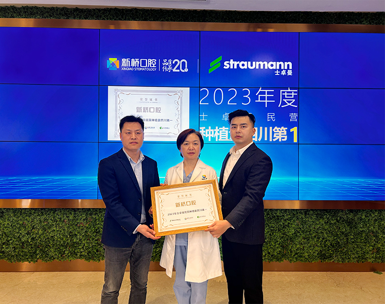 2024年3月15日,新桥口腔荣获“2023年瑞士士卓曼(ITI)民营种植量四川第一”荣誉认证,全球知名高端种植体品牌—瑞士士卓曼为新桥口腔颁发奖牌。