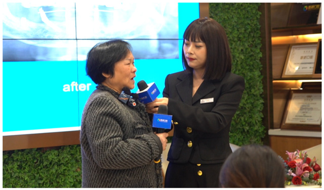 活动当天,新桥口腔多位顾客也前来分享自己的种牙体验。61岁的侯阿姨长居苏州,之所以选择新桥口腔,是因为:“我女儿在成都工作,非常孝顺。听见我说缺牙很影响生活质量,二话不说就把我接了过来。之前我在苏州种过牙,但实际体验下来技术没有新桥口腔好。”