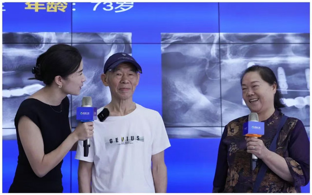 73岁的赵先生今天携老伴一同来到活动现场,这对夫妇都是新桥口腔种植牙顾客。刚完成半口即刻种植手术拆线的赵先生,自信地向大家展示自己整齐美观的新牙。站在一旁的老伴也深有感触地说:“我们跑了好几家医院,最终选择了新桥口腔。现在种好了牙,什么东西都能吃,我们非常满意!”