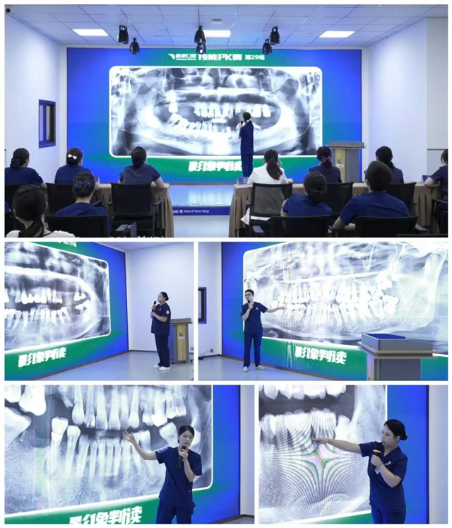 8月12日下午,来自成都七院区的口腔预防科7位新人同台竞技。在“影像判读”环节,大家首先根据全景片分析患者潜在的口腔问题,并给出个性化诊疗建议。