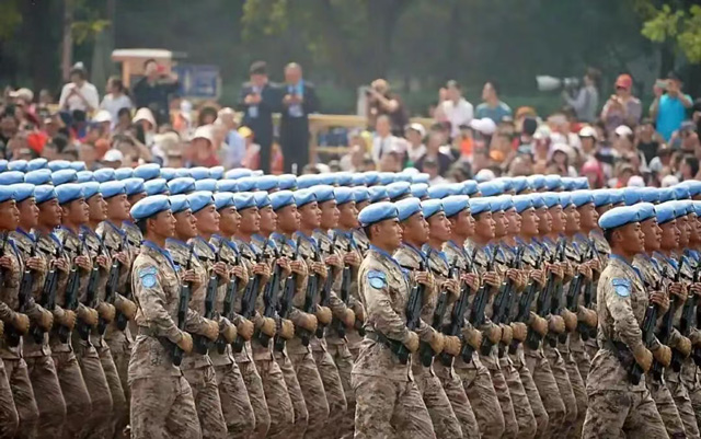 头戴蓝色贝雷帽,身披荒漠迷彩,中国维和部队向外界展示了中国人民解放军的专业素养和精神面貌,也展示了中国强大的军事力量和维护世界和平的决心与能力。