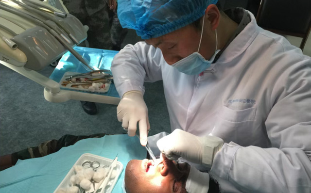 繁忙的工作也让我无暇分心。口腔科只有我一名医生,也没有配合四手操作的护士,我还需要克服医疗设备不全和突发故障等困难,依靠经验去判断患者的病情,给予相应的治疗。八个月里,我接诊了近千例患者,手术量和治疗量占了医院的三分之二。