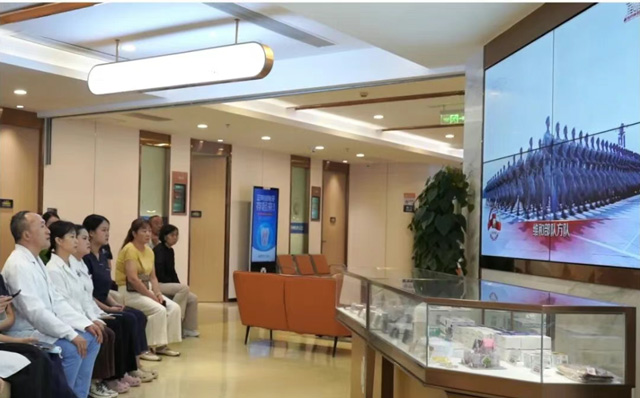 9月3日,新桥口腔成都蜀汉院区,大屏幕上正在直播纪念中国人民抗日战争暨世界反法西斯战争胜利80周年阅兵式,昂扬的军姿、豪迈的步伐,气势恢宏的各受阅队伍逐一亮相。当头戴蓝色贝雷帽的维和部队方队走过……