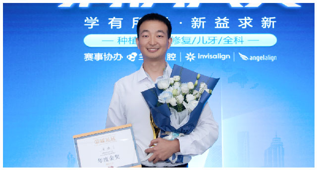 最受瞩目的年度金奖,被成都蜀汉院区种植专业组副主任黄清川收入囊中。黄清川主任有两个作品入围决赛,其中《后牙区即刻种植早期负重一例》获得专科卓越病例奖,《内倾型深覆合终末期牙列患者全口种植一例》荣获年度金奖。